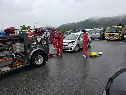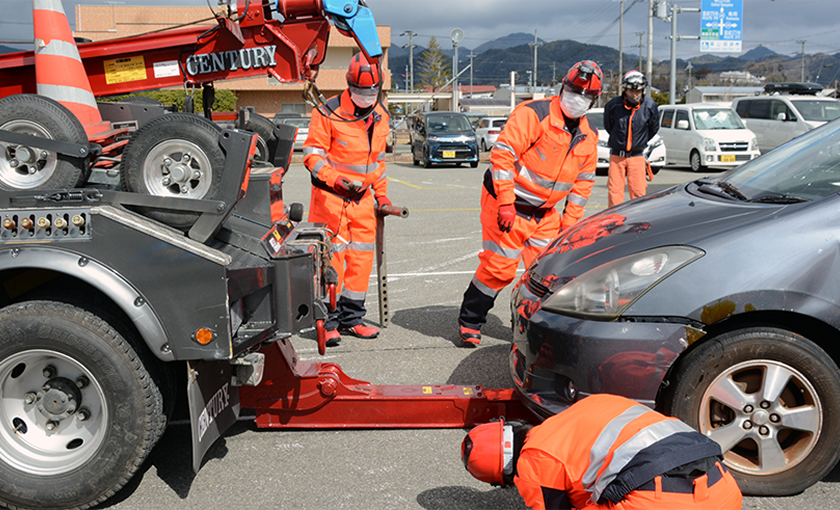 合同訓練を通じて、実践に即したロードサービスの技能向上、ならびにチームワークの強化を身に着けることができる大事な研修です。