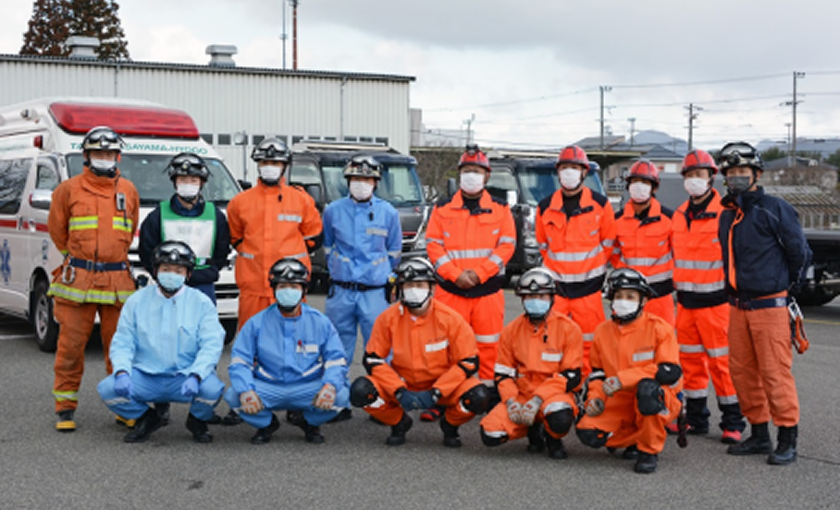 事故現場等でよく顔を合わせるメンバーでの合同訓練です。真剣さが非常に伝わる大事な研修です。
